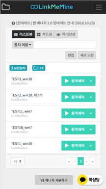 1. 제어하고자 하는 장치 우측의 [원격제어] 버튼을 클릭합니다.